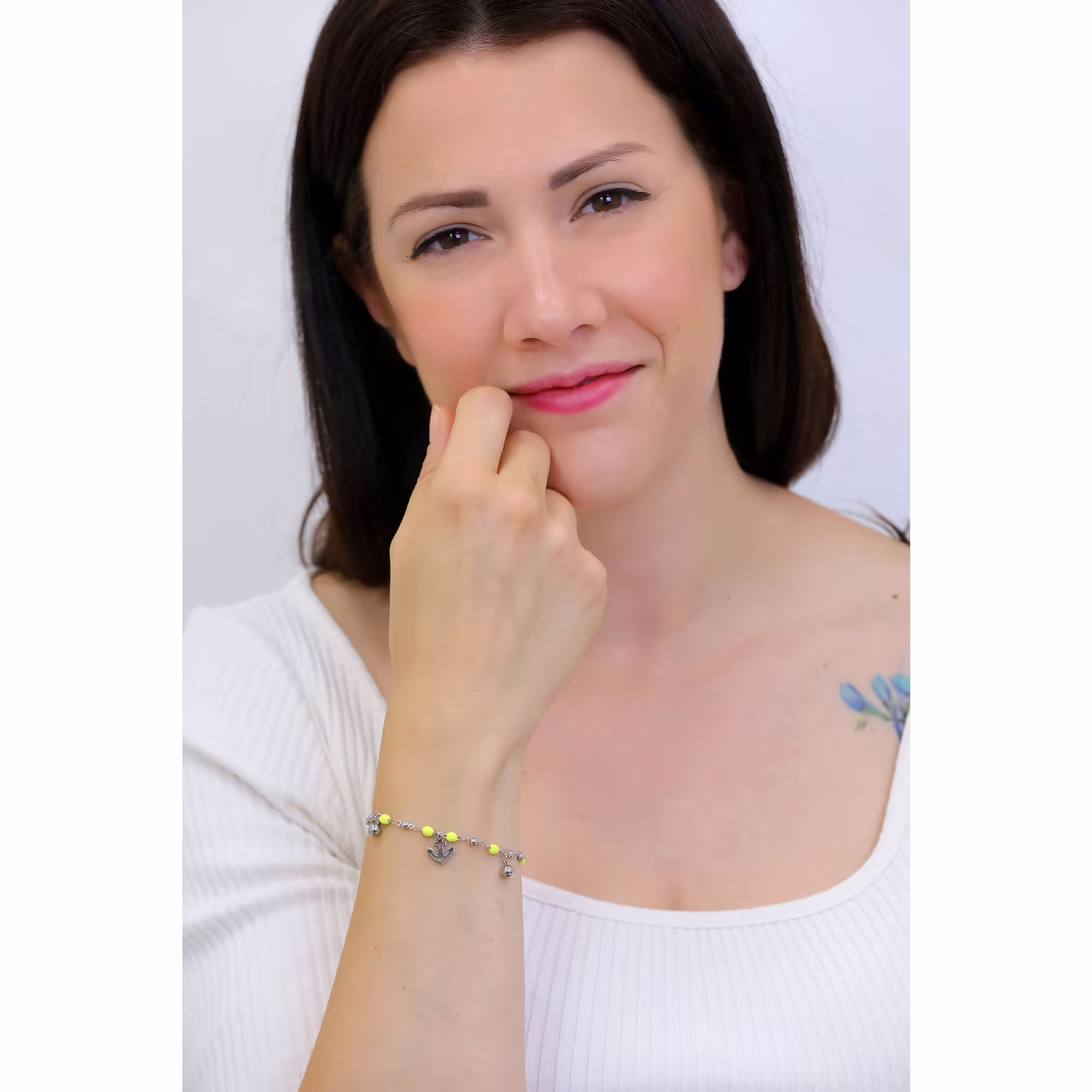 Bracciale Ancora S’Agapõ Vibes SVB58. Un bracciale che sprigiona freschezza e positività! Realizzato in acciaio inossidabile e smalto giallo con delicata ancora centrale simbolo di speranza, legame, buon viaggo.