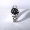 - Cassa: 39mm, acciaio inossidabile, ghiera sfaccettata. Quadrante vetro zaffiro, sfondo nero.