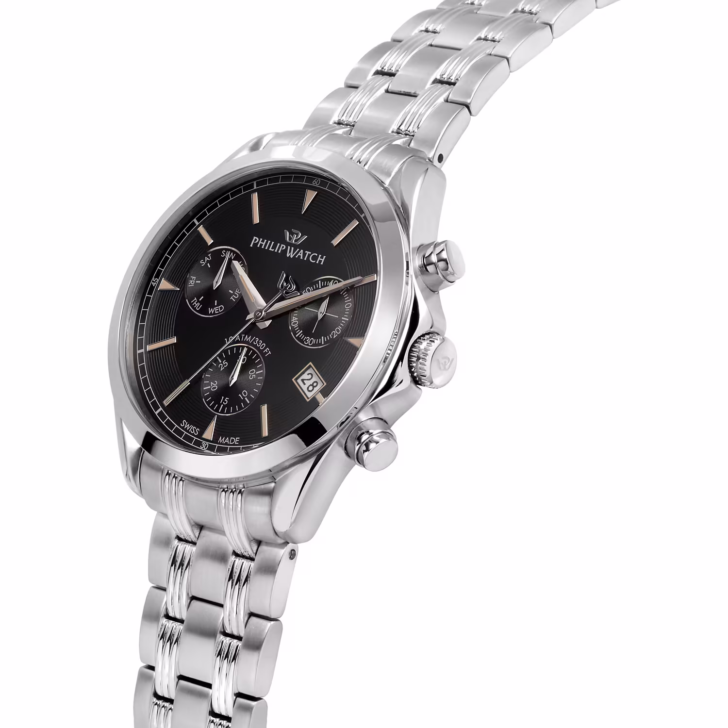 Nata nel 1858, Philip Watch è la più antica marca di orologi Swiss Made presente in Italia, capace di interpretare il perfetto connubio tra la precisione svizzera e la creatività italiana dando vita quindi a prodotti dove il design esclusivo si integra perfettamente con la tecnologia e l’innovazione. Fin dall’inizio infatti il marchio si specializza nella realizzazione di orologi con un fantastico rapporto tra qualità e prezzo. Collezione dopo collezione, rimanendo fedele alla manifattura Swiss Made, Philip Watch ha costruito infine un patrimonio prezioso.